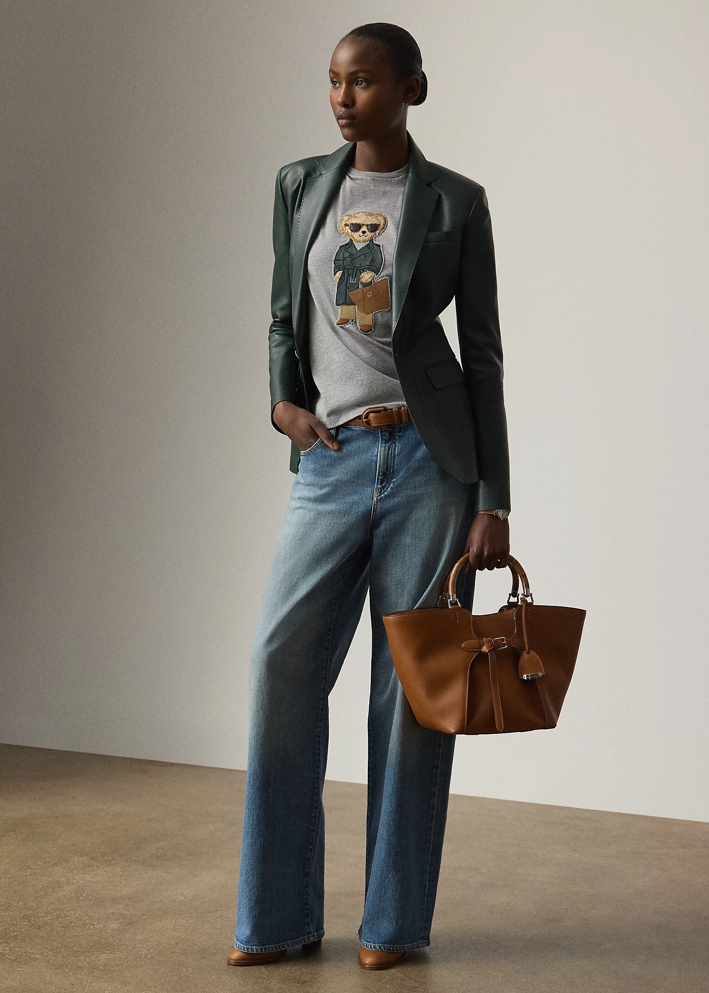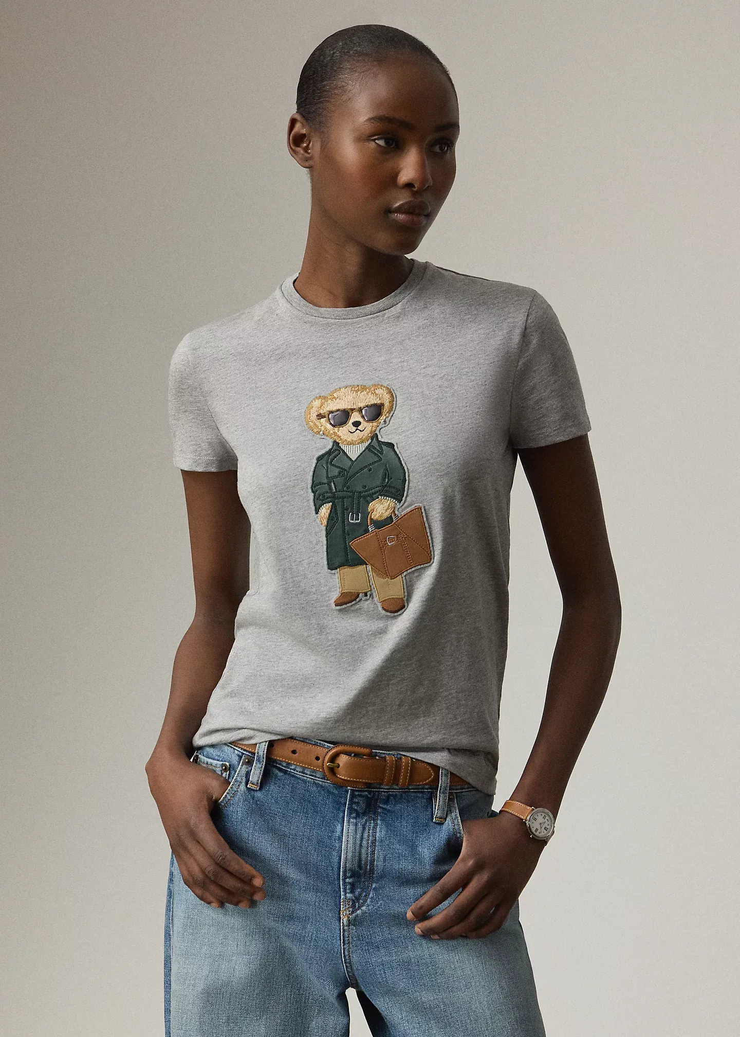 - Polo Bear patch at the center front. Script “ralthtph lauthtren” embroidery at the left hem.